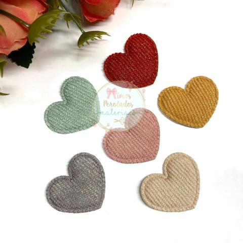 PAR Aplique Coração veludo cotelê com BRILHO - 2 unidades